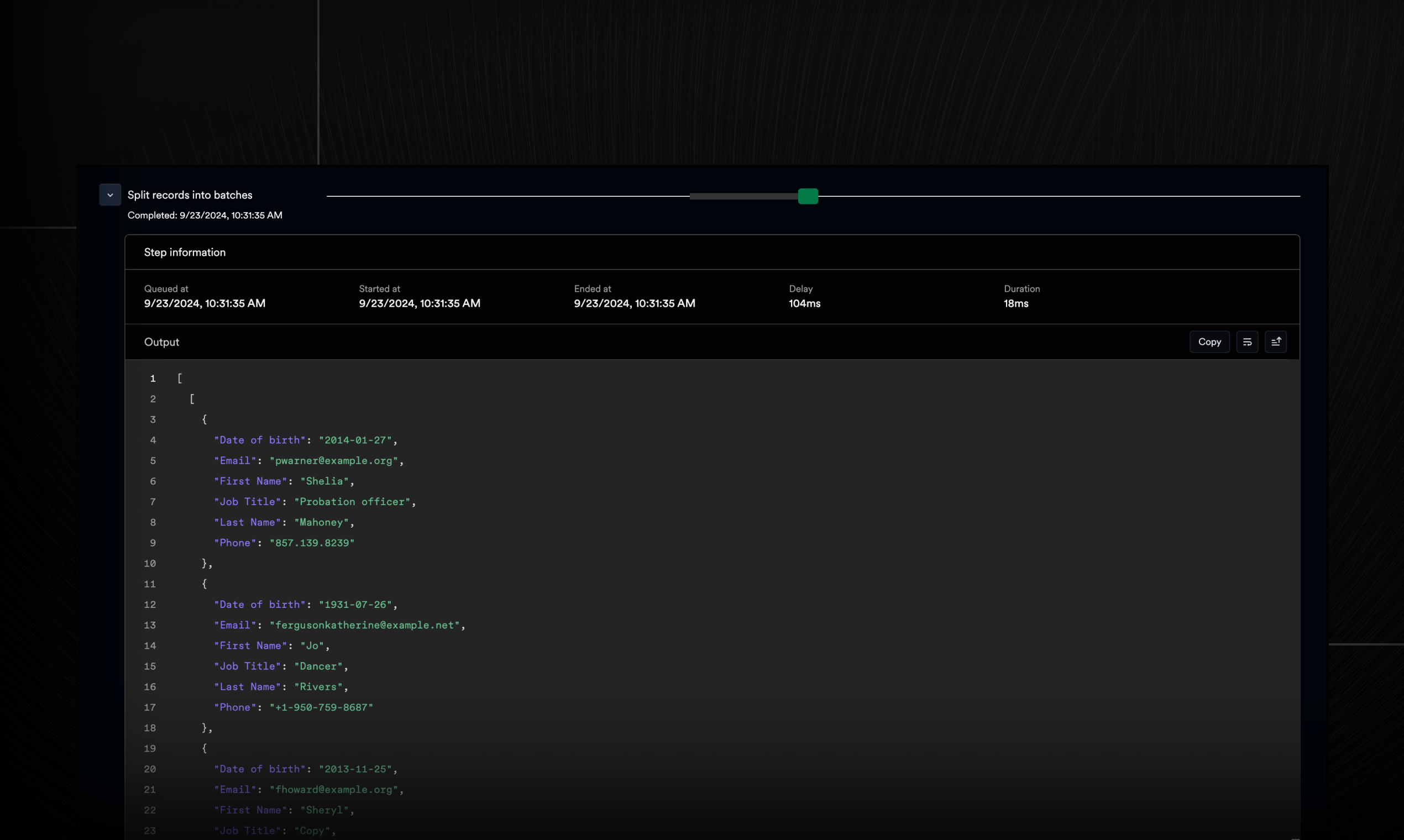 • Expanded run details: For those who need more granular insights, each run can be expanded within the list for a detailed breakdown, without losing your place in the workflow. This seamless integration between a high-level overview and detailed function execution ensures that you maintain both context and focus.